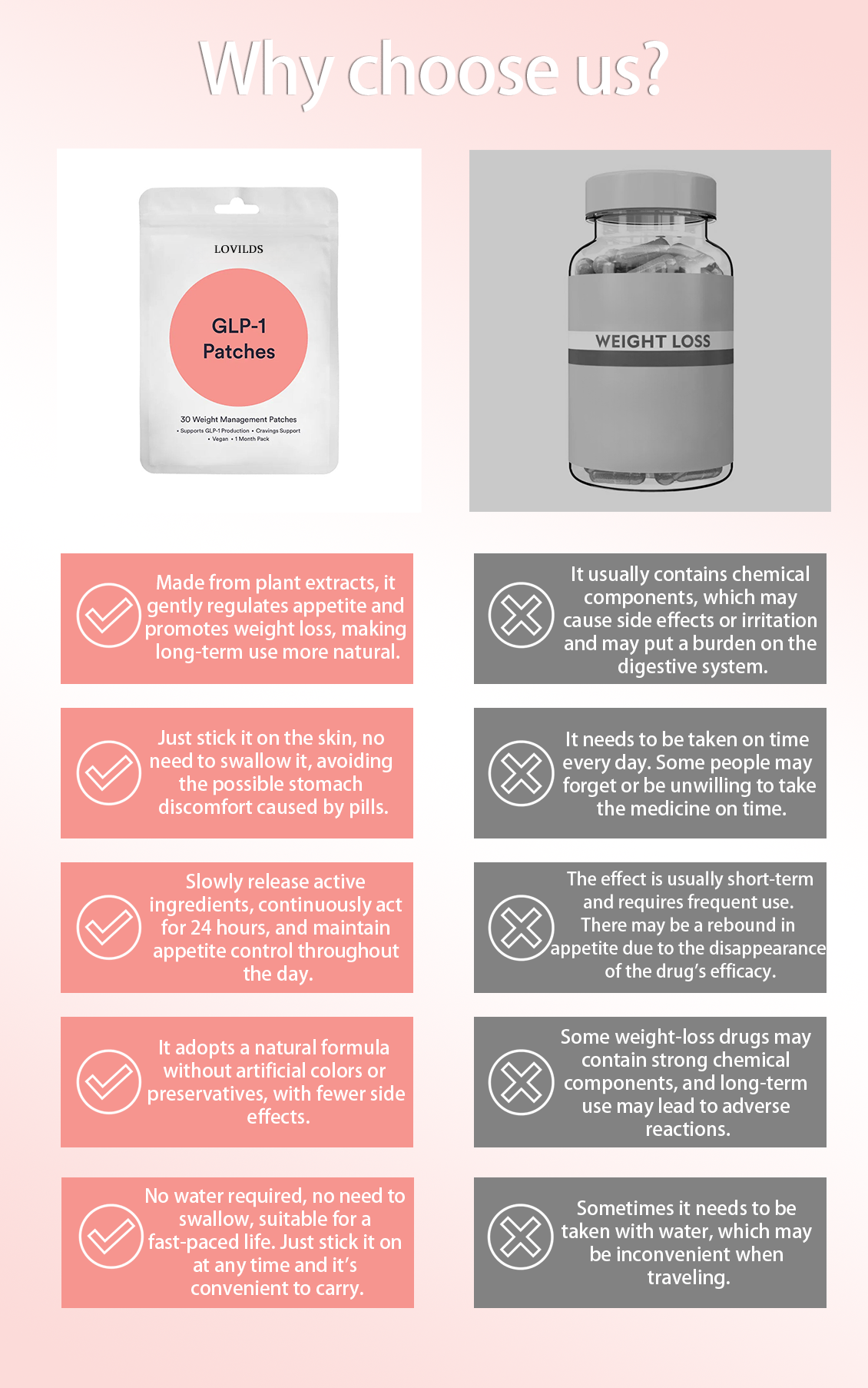 Our patches offer a distinct advantage over pills by delivering ingredients directly into the bloodstream, bypassing the digestive system for faster and more effective results.